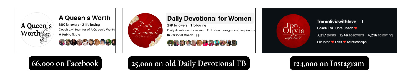 As the founder of several ministry platforms, there is a combined following of over 250,000 subscribers on Instagram, Facebook, and Substack.